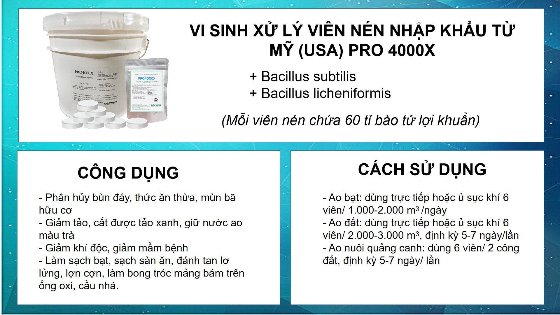 + Bổ sung men vi sinh PRO4000X giúp làm sạch nước và hạn chế mầm bệnh phát triển