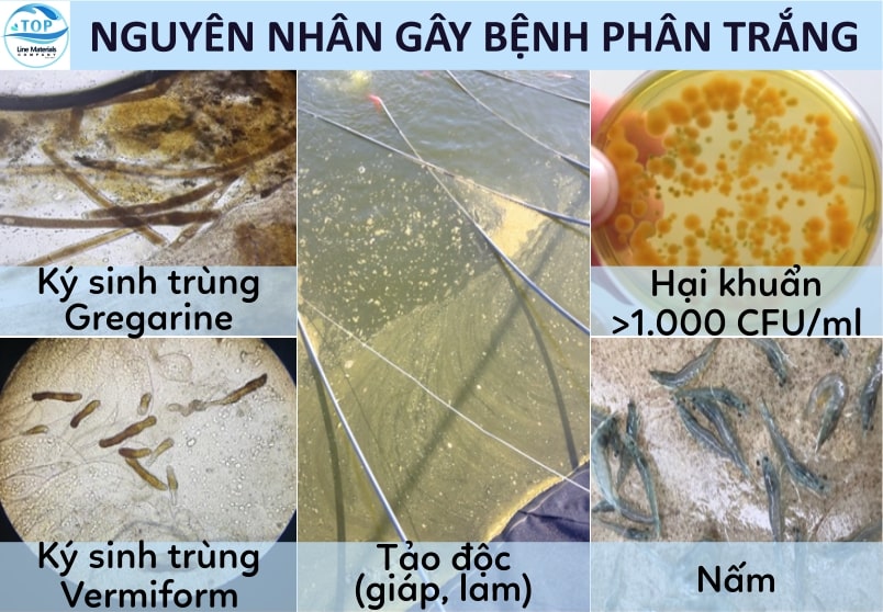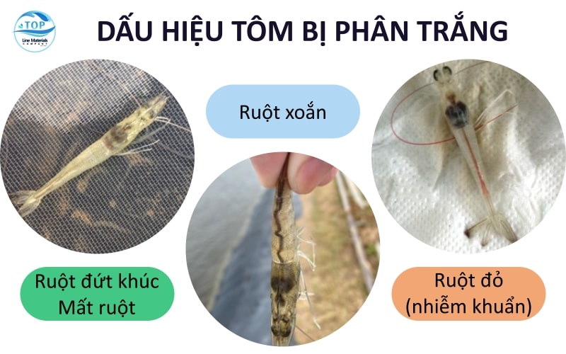 - Phòng trị triệt để bệnh phân trắng, mủ đuôi, ruột xoắn, ruột nhỏ trên tôm